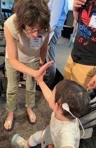 Usher 1F Collaborative Board Chair Melissa Chaikof meets Yuge at the Usher Syndrome research conference in the Netherlands in June, 2025